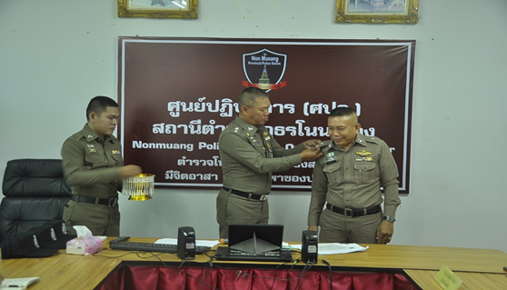 1. ประดับยศแก่ข้าราชการตำรวจ สภ.โนนเมืองในการเลื่อนยศที่สูงขึ้น จำนวน 3 นาย