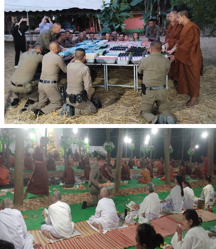 วันที่21และวันที่ 26 พ.ย. 2567เวลา 18.00 น. พ.ต.ท.นวัธนันต์. ฉ่ำแสง พร้อมด้วย ข้าราชการตำรวจโนนเมือง ร่วมกันนำน้ำดื่ม น้ำส้ม น้ำหวาน มาถวายให้แด่ พระภิกษุสงฆ์จำนวน 60 รูป ณ.วัดโคกศรีเรืองหมู่ที่ 2 ต. โคกม่วง ซึ่งได้จัดงานปริวาสกรรมขึ้น มีพระสงฆ์จำนวนมาก และร่วมสวดมนต์เย็นรับศีลรับพร มีส่วนร่วมกับชุมชนฯสร้างความรักอันดีงามแสวงหาความร่วมมือระหว่างตำรวจและประชาชน