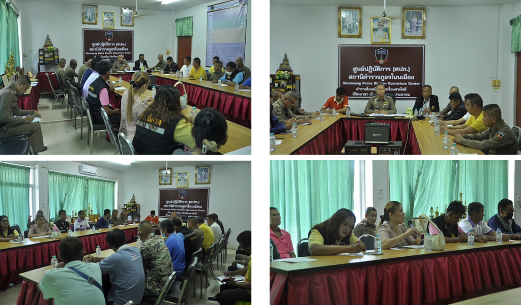 วันที่ 6 ตค.66 เวลา 10.00 น. พ.ต.ท.นวัธนันต์ ฉ่ำแสง สว.สภ.โนนเมือง เรียนเชิญ 5 เสือระดับตำบลโคกม่วง 5 เสือระดับหมู่บ้านหมู่ 1 ถึงหมู่ 9 ตำบลโคกม่วง มาประชุมคณะทำงานสนับสนุนการระงับเหตุนำผู้ป่วยจากการเสพยาเข้าบำบัดรักษา ( 5 เสือพาน้องทำความดี) ประชุม กำหนดออกแผนแนวทางและการทำงานร่วมกันในการระงับเหตุผู้ป่วยจิตเวชและเอกซเรย์ ค้นหาเพิ่มเติมบุคคลที่เข้าข่ายเป็นผู้จิตเวช เพื่อดำเนินการในส่วนที่เกี่ยวข้อง เพื่อเกิดความยั่งยืน ในการแก้ไขปัญหายางเสพติดอย่างมีประสิทธิภาพ ในชุมชนของตำบลโคกม่วงอำเภอโนนสังจังหวัดหนองบัวลำภูต่อไป