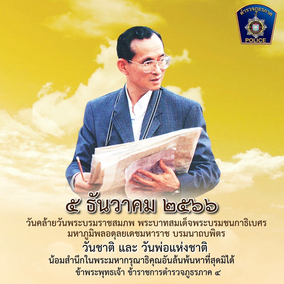 วันที่ 5 ธ.ค.2566 เวลา07.00 น. เนื่องในวันคล้ายวันพระบรมราชสมภพ พระบาทสมเด็จพระบรมชนกาธิเบศร มหาภูมิพลอดุลยเดชมหาราช บรมนาถบพิตร วันชาติและวันพ่อแห่งชาติ ภายใต้การอำนวยการของ พ.ต.ท.นวัธนันต์ ฉ่ำแสง สว.สภ.โนนเมือง มอบหมายให้ ร.ต.อ.เอราวัณ รถน้อย รอง สว.(สอบสวน) พร้อมด้วยข้าราชการตำรวจ สภ.โนนเมือง ร่วมพิธีเจริญพระพุทธมนต์และพิธีวางพานพุ่มดอกไม้ถวายราชสักการะ ณ ห้องประชุมอำเภอโนนสัง