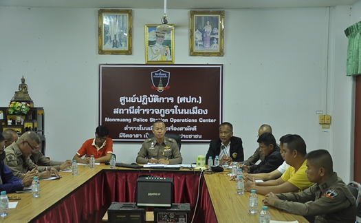 วันที่ 5 ธ.ค.2566 เวลา07.00 น. เนื่องในวันคล้ายวันพระบรมราชสมภพ พระบาทสมเด็จพระบรมชนกาธิเบศร มหาภูมิพลอดุลยเดชมหาราช บรมนาถบพิตร วันชาติและวันพ่อแห่งชาติ ภายใต้การอำนวยการของ พ.ต.ท.นวัธนันต์ ฉ่ำแสง สว.สภ.โนนเมือง มอบหมายให้ ร.ต.อ.เอราวัณ รถน้อย รอง สว.(สอบสวน) พร้อมด้วยข้าราชการตำรวจ สภ.โนนเมือง ร่วมพิธีเจริญพระพุทธมนต์และพิธีวางพานพุ่มดอกไม้ถวายราชสักการะ ณ ห้องประชุมอำเภอโนนสัง