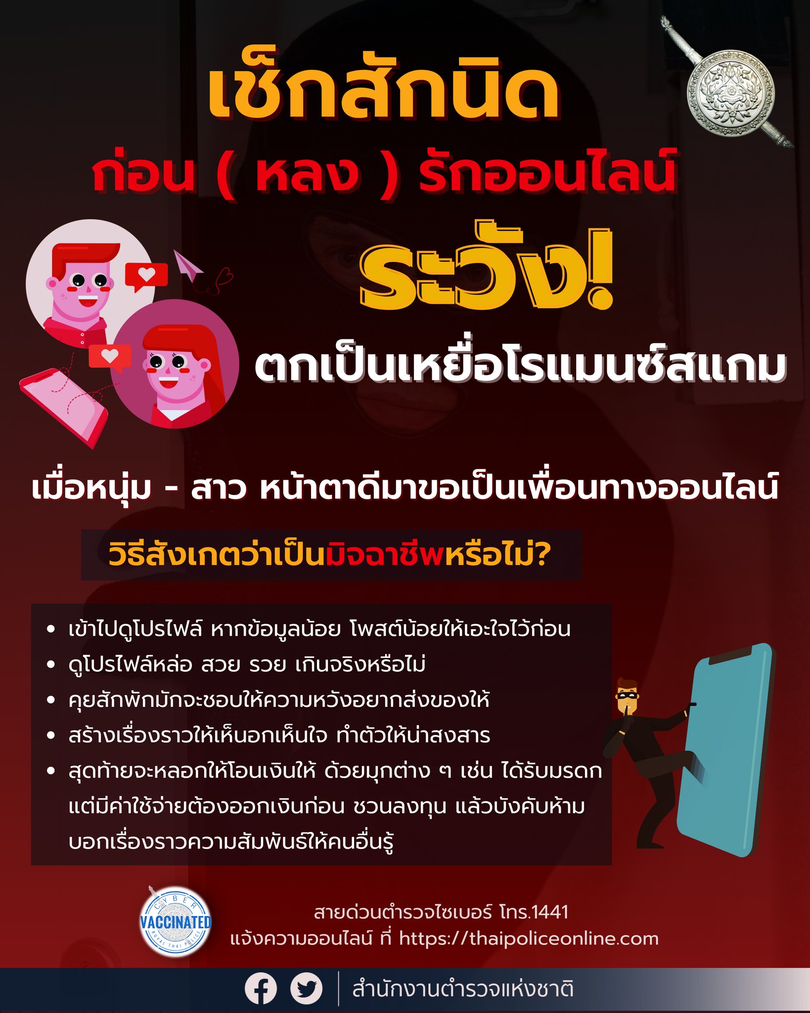 เช็กสักนิด ก่อน (หลง) รัก ระวังโจรออนไลน์มาในคราบคนคุย คนรัก แล้วหลอกให้โอนเงินจนหมดตัว หล่อ สวย โปร