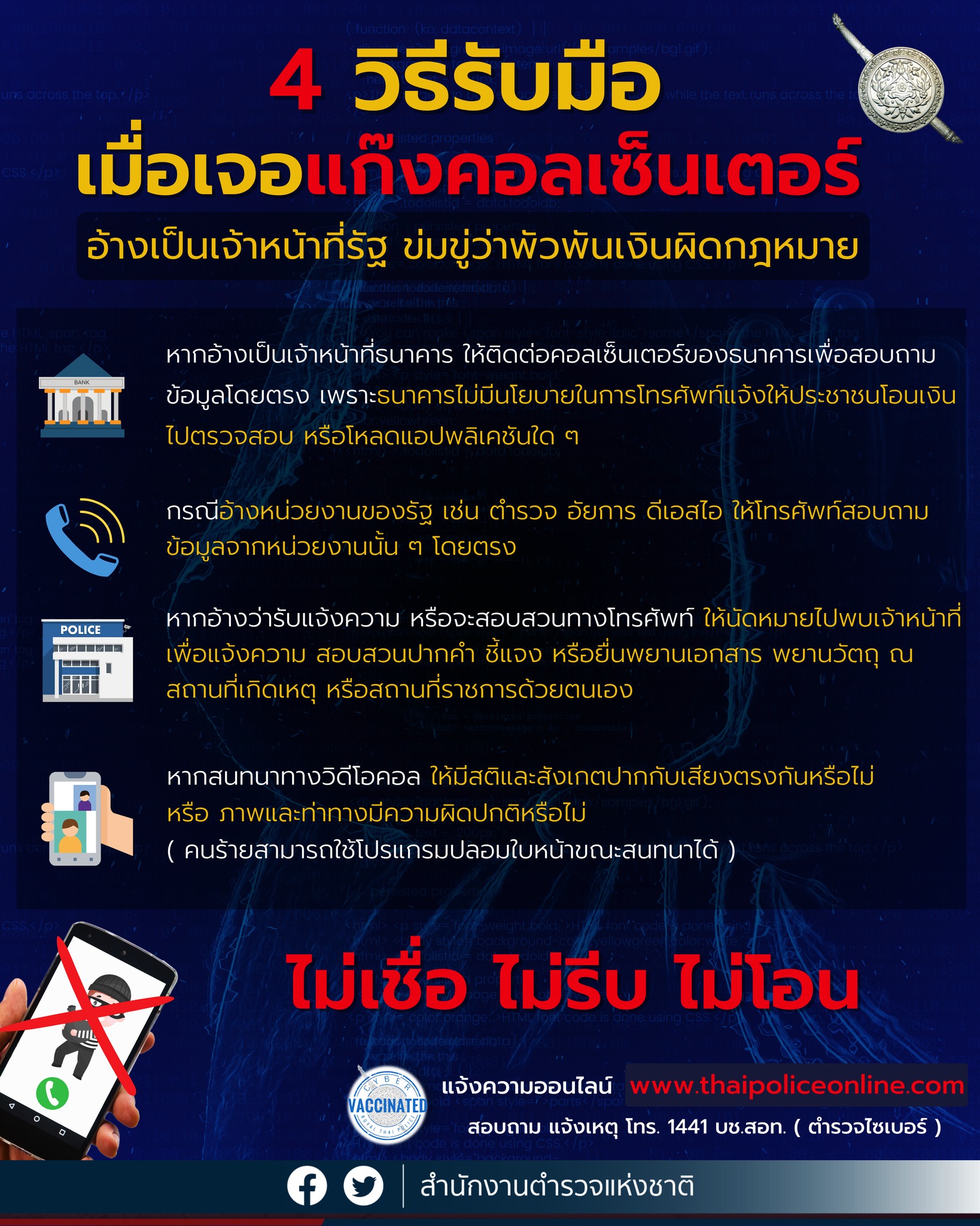 4 วิธีรับมือ เมื่อเจอแก๊งคอลเซ็นเตอร์!! โทรศัพท์มาแอบอ้างเป็นเจ้าหน้าที่ ข่มขู่ว่าพัวพันเงินผิดกฎหมา