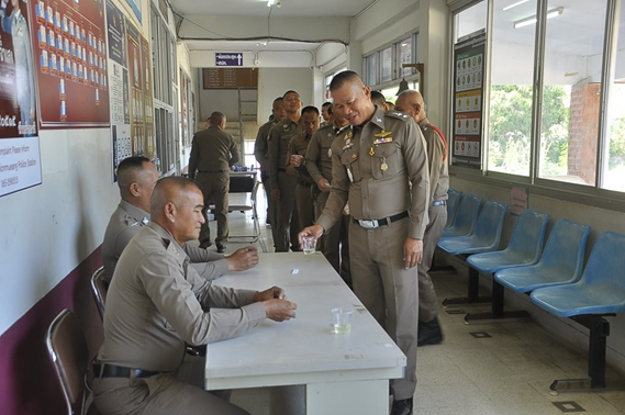 สภ.โนนเมืองตรวจปัสสาวะหาสารเสพติดเพื่อเป็นปฏิบัติตามนโยบายของผู้บังคับบัญชาและเพื่อเป็นการป้องกันไม่ให้ข้าราชการตำรวจยุ่งเกี่ยวกับยาเสพติด