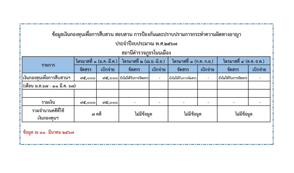 O13/67 ข้อมูลเงินกองทุนเพื่อการสืบสวน สอบสวน การป้องกันและปราบปรามการกระทำความผิดทางอาญา